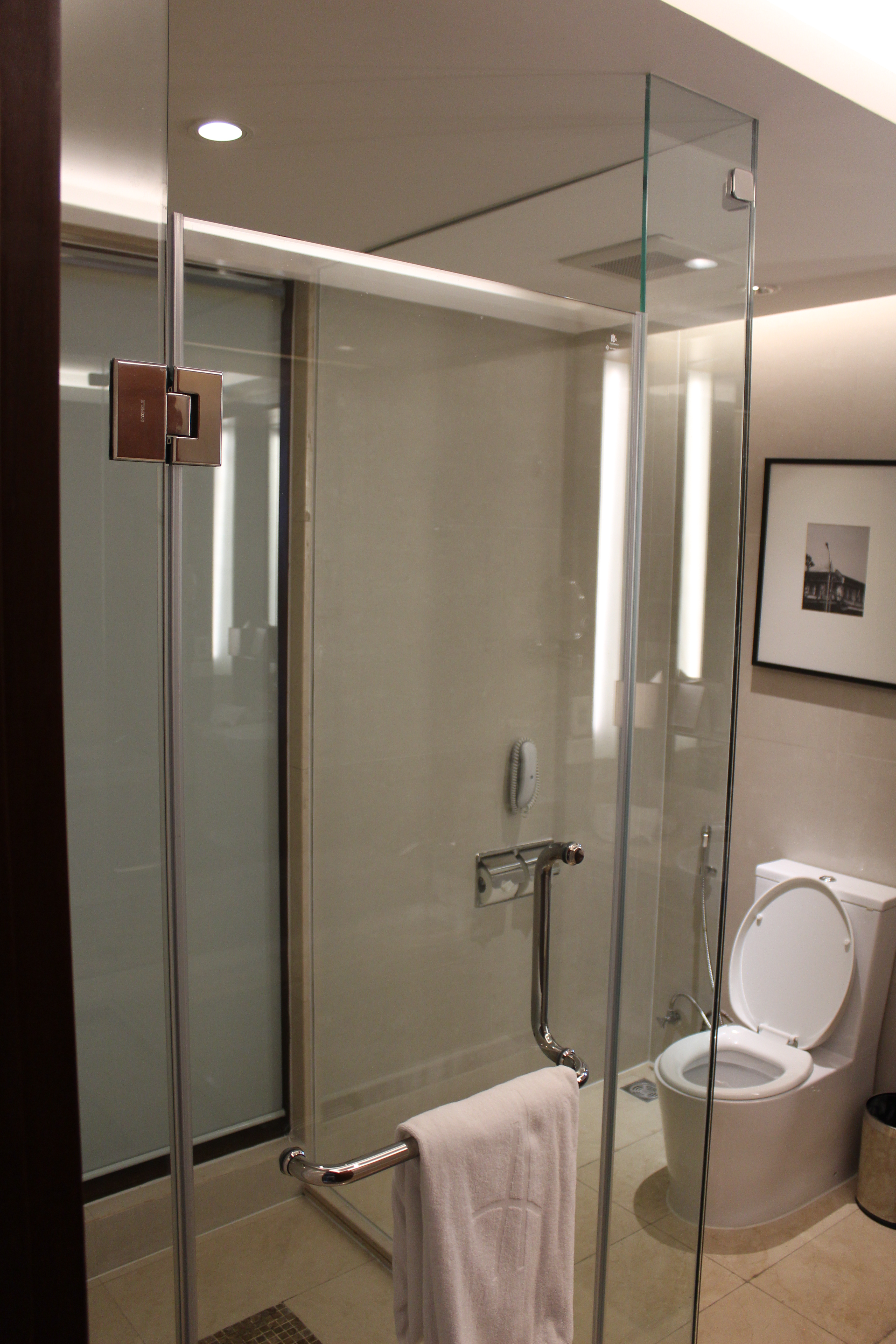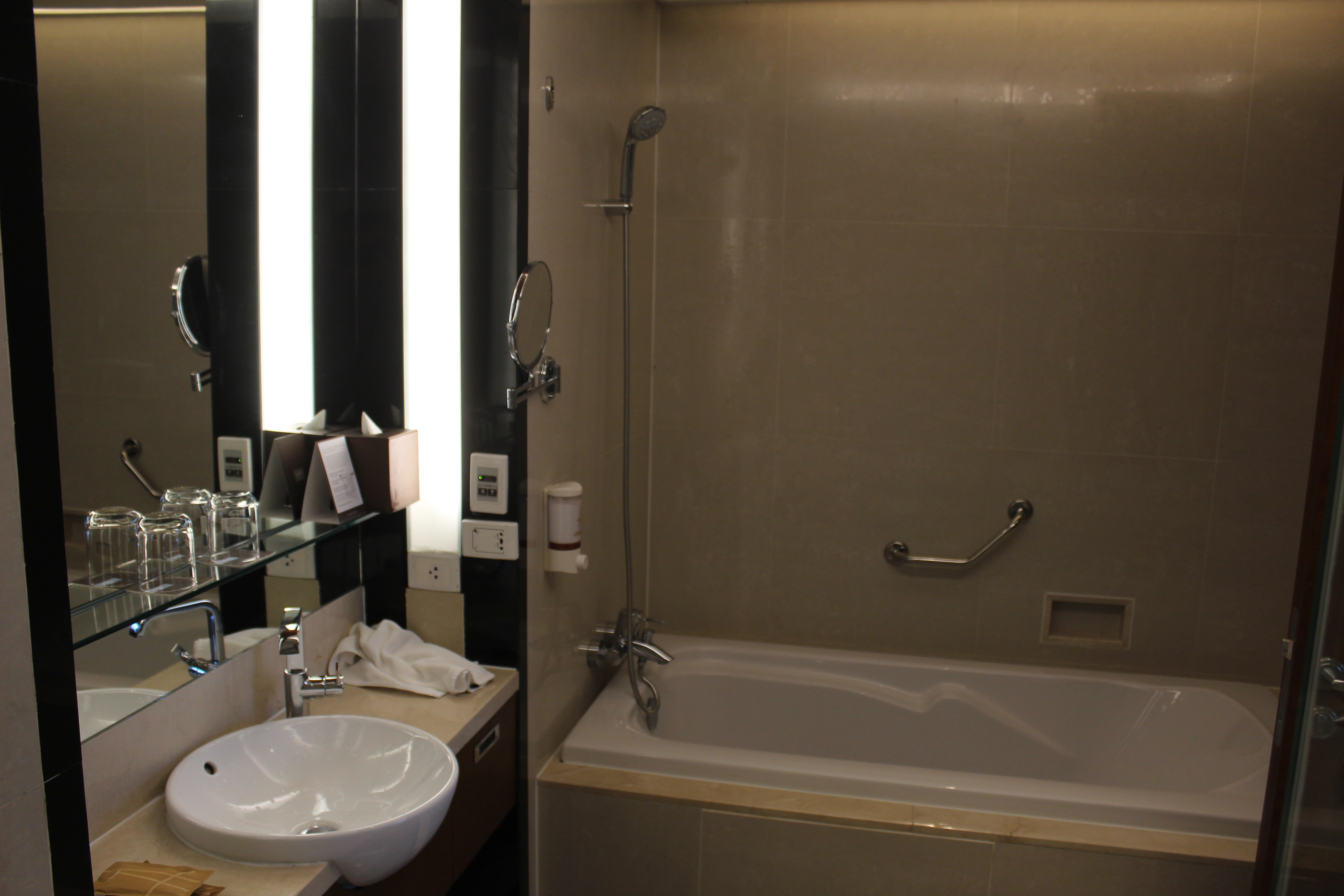 Camere molto spaziose e luminose, bagno perfino esagerato, c’è sia la doccia, enorme, che la vasca. Presenza di ciabatte, accappatoio, ferro da stiro, bollitore con caffè e the e bottiglia di acqua.