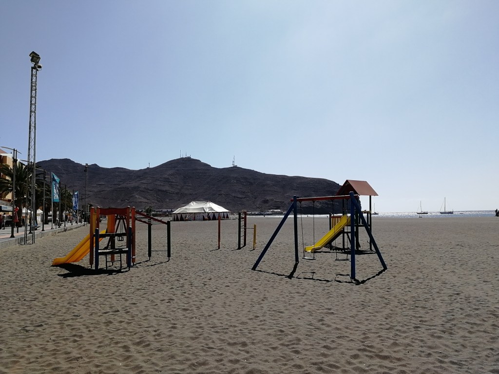 La spiaggia di Gran Tarajal è di sabbia nera, qui il l’oceano è molto forte e ci sono delle onde possenti… dal nostro punto di vista non adatto a famiglie, piuttosto se amate bagni sulla cresta dell’onda potrete tuffarvi in una delle grosse onde 🙂