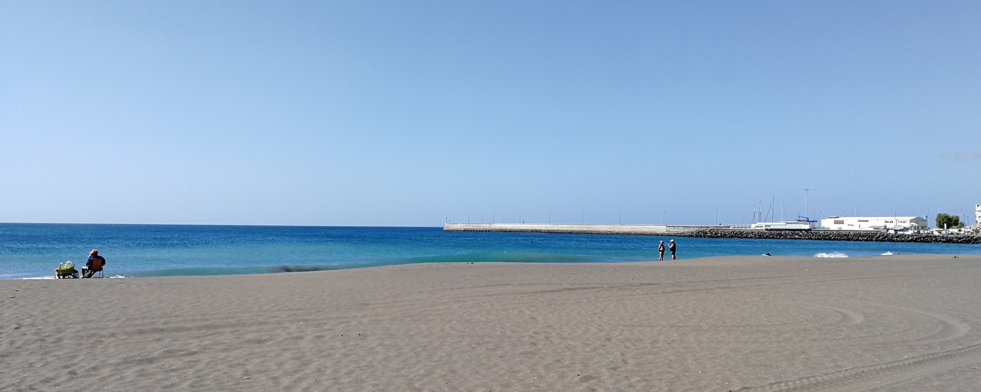 La spiaggia è di sabbia nera adatta alla balneazione ma l’acqua non è piatta.