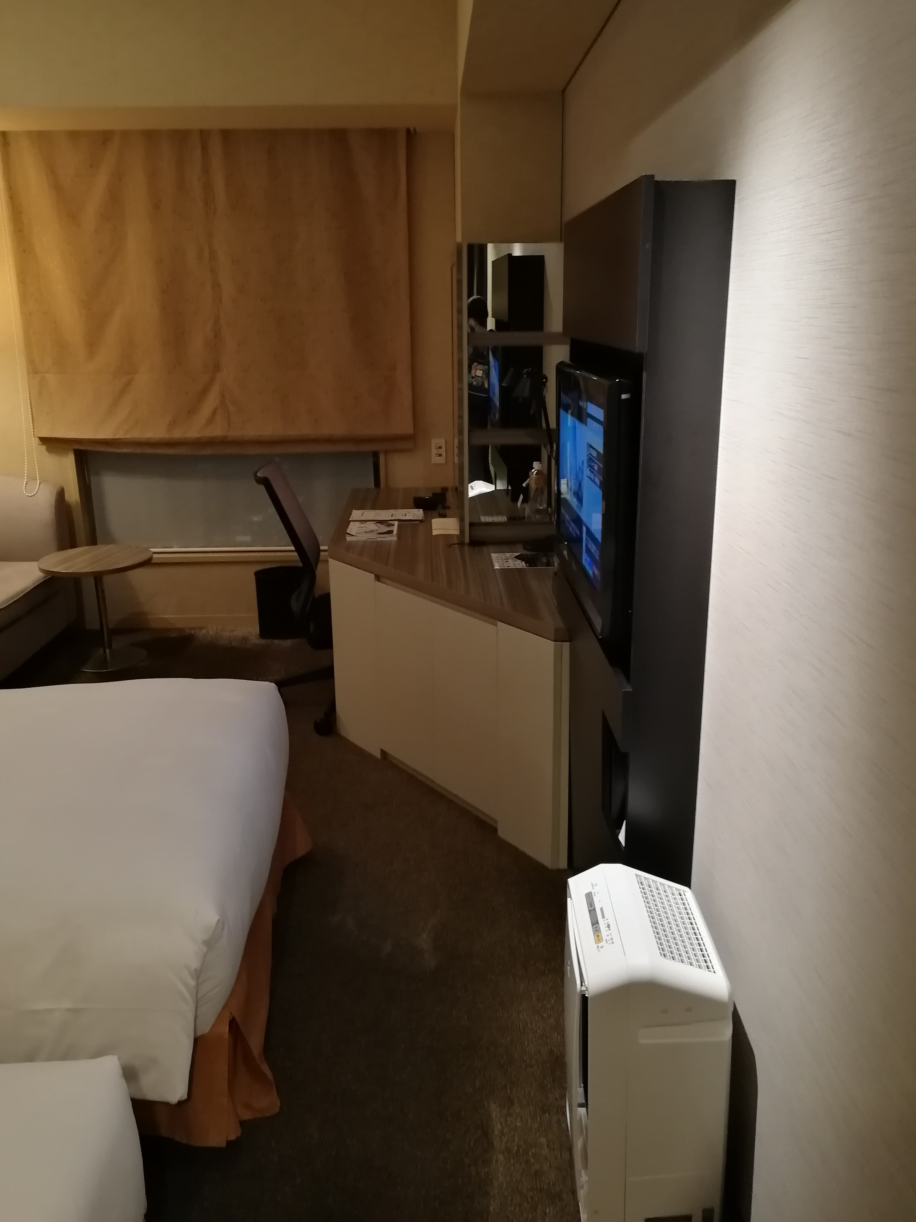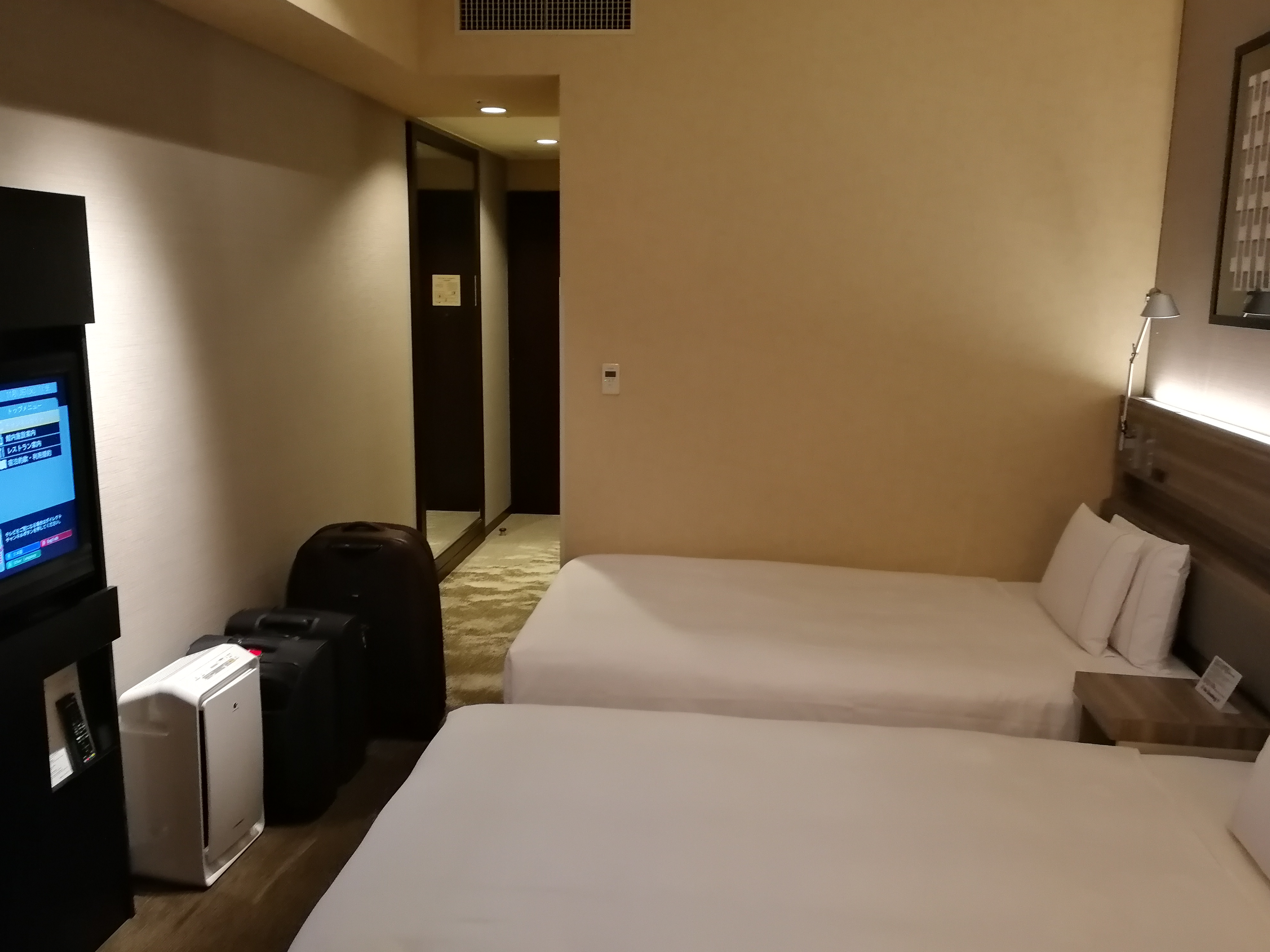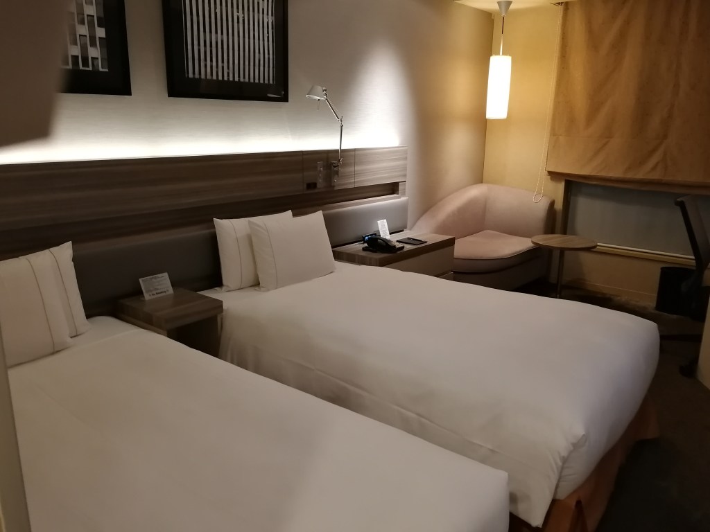Gli spazi della camere, sono tutto sommato grandi, rispetto alle dimensioni degli altri hotel di Tokyo. Due letti grandi, un piccolo divano, un tavolino e una finestra che mostra il bellissimo panorama. Sorseggiare un buon vinello alla finestra non ha paragoni.