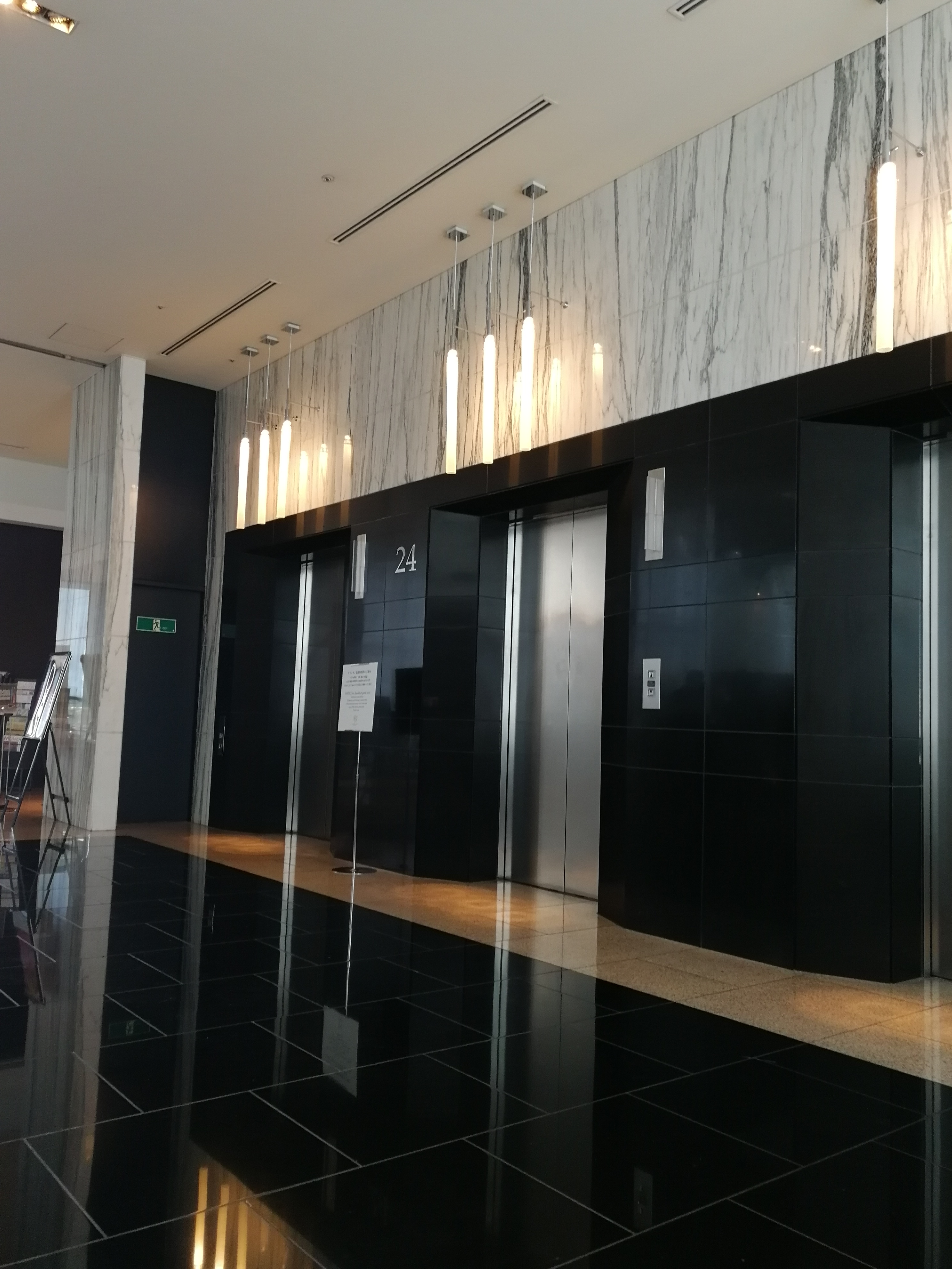 La hall si trova al 24º piano, per accedervi, ci sono degli ascensori.