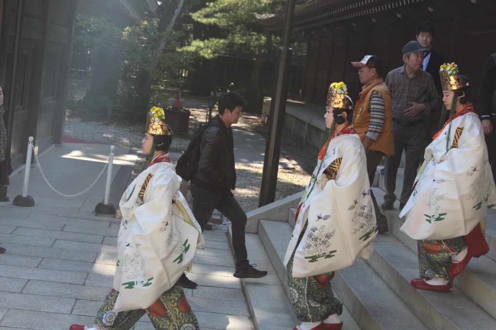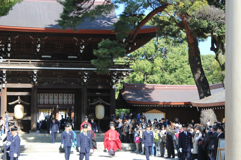 Seconda tappa : Meiji Shrine Kaguraden. Questo tempio è immerso in una foresta, sembra quasi nascosto. E’ molto grande e viene utilizzato anche per cerimonie ufficiali. Noi siamo stati particolarmente fortunati perché abbiamo assistito ad una di queste. Abbiamo proprio partecipato ad uno scorcio di vita quotidiana ed è stato interessante e significativo.